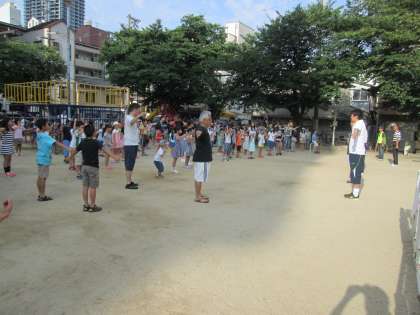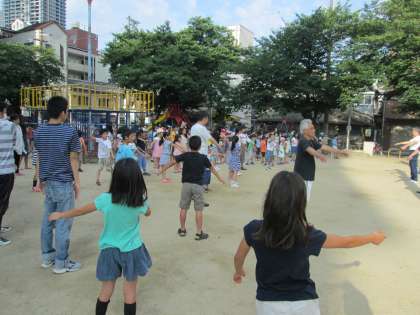 今日から子どもたちは「夏休み」と同時に、今日から川崎公園で8月6日まで、地域主催の「ラジオ体操」が行われます。朝7時からと早いですが、初日からたくさんの子どもたちが公園に集まって、体操しました。学校からも教員が4名参加しました。「ラジオ体操第1」だけでなく「ラジオ体操第2」も行うのが、本庄地区のすごいところです。子どもたちのみんなも、地域や保護者の方と一緒に、楽しんでいました。夏休み、子どもたちが元気で健康に過ごせますように!