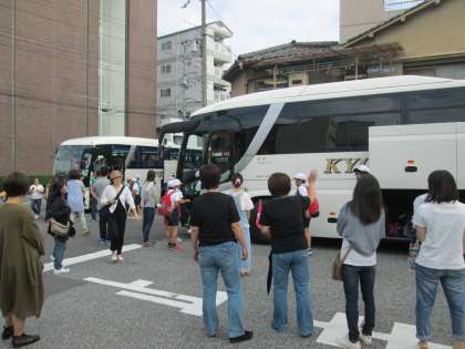 本日、さきほど無事、参加予定者全員がバス2台で、ハチ高原に出発しました。たくさんの保護者の方々、休日にもかかわらずお見送りに来ていただき、本当にありがとうございました。楽しい自然体験学習になりますように!!