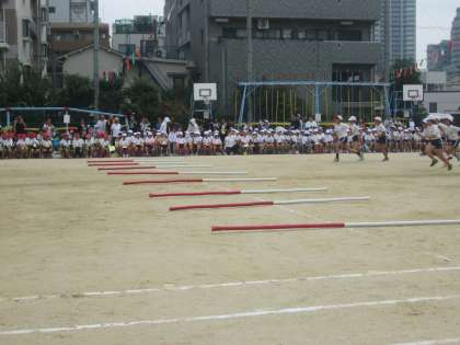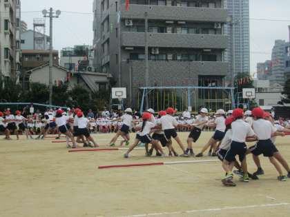 4年生の棒引きは見ごたえのある好勝負でしたね。綱引きと違って、ひとりひとりの力の入れ様で大きく、戦況が異なってきます。相手陣内に引きずられながらも最後まで粘って引きわけにしたり、最後まであきらめない姿がとても良かったですね。