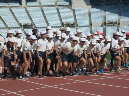 2日(水)6年生は長居スタジアムへスポーツ交歓会に行ってきました。北区の小学校11校の6年生全員、約500名が集まり、終日スポーツを楽しみました。