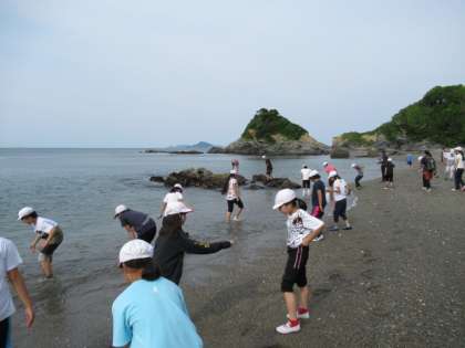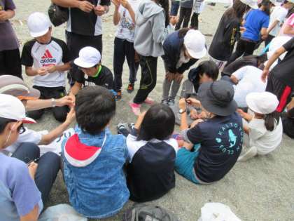 しろんご浜では水遊びとアクセサリー作りをしました。