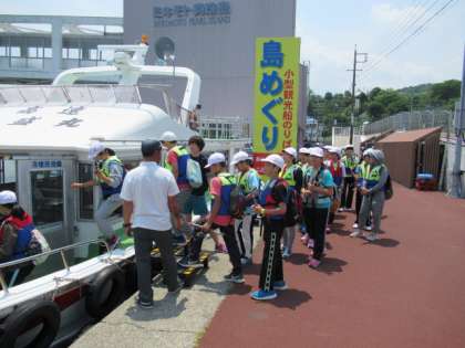 クラスごとに2隻の船に分かれて、「菅島」に向かいます!