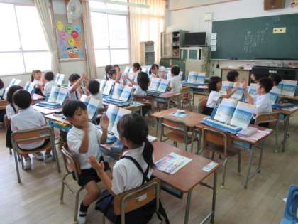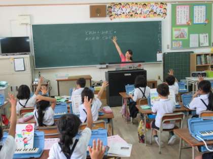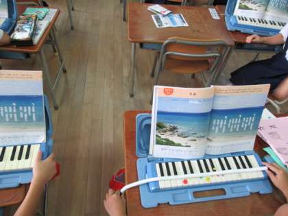 今日の5時間目、1年生は1組も2組も音楽でした。