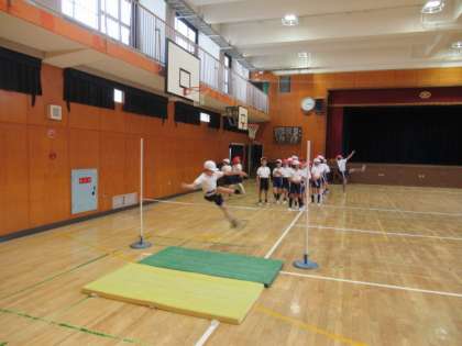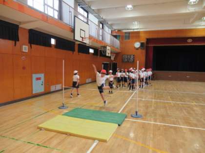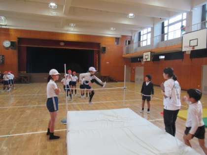 昨日、4年生が講堂で高跳びを行っていました。