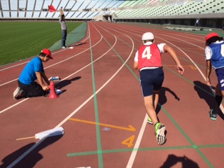 ここでは100M、800Mのタイム計測と学校対抗リレーを行いました。