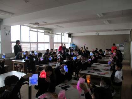 本日、中之島スマイルアートプロジェクトの一環として、「ひかりの実」を作成する授業に3年連続で参加しました。例年は1・2年生が作るのを5・6年生がサポートする縦割り学習を行っていましたが、今年度から5・6年は1・2年の面倒をみつつ、自分の光の実も作成することになりました。