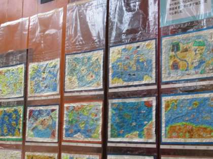夢の島の中に、段ボールで作られたそれぞれの家があり、宝物のビー玉が置いてあります。堂々と置いてあるものもあれば、隠してあって見つけるのが大変な家もあります。