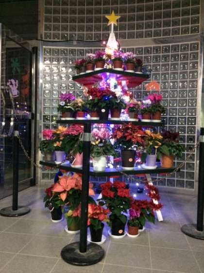 春から念入りに計画を立てて、花を購入し、手作りでツリーを作成し、素敵なフラワーツリーができました。すごいですね!写真は夜です。昼間もきれいですが、夜はイルミネーションに包まれて、とても素敵な感じになります。
