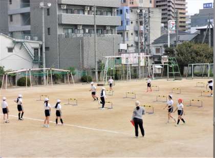 バーを落とさないように歩幅を考えて、うまく飛び越えられるようになっていました。
