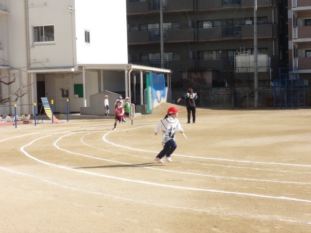 みんなでバトンを繋ぐことに大盛り上がりで、初めてのリレーでしたがとても上手に走ることができていました。