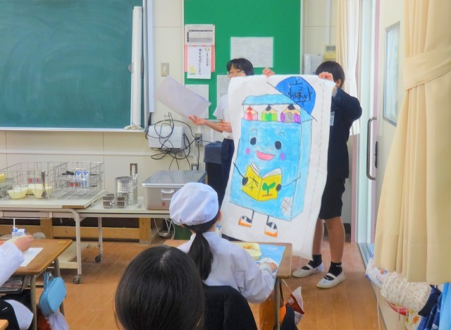 全校児童から350点以上集まったキャラクターの中から代表委員会が12点を選び、みんなの投票で決定しました。