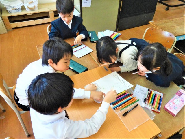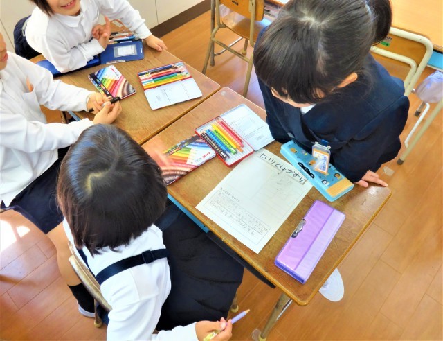 2年生は、新しい係が決まり、係の紹介カードを作っていました。