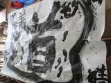 6年2組の担任は書道が堪能なのを生かして 特大筆を購入し、巨大な半紙に児童が先生...
