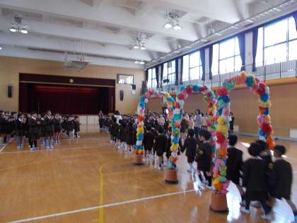 1年生が入場するときの拍手は盛大で、あたたかい雰囲気になりました。入学式に続き、児童代表の歓迎の言葉は立派で、頼れる6年生の姿でした。2年生からはあさがおの種がプレゼントされました。