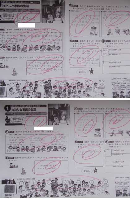 「わたしと家族の生活」の学習で、自分の生活を振り返り、家族や周りの人のおかげでできるようになったことや家族のために自分がしたこと、家族が自分のためにしてくれたことを思い出しながらプリントにまとめました。学習を通じて、家族とのつながりを感じたり、家族の一員としての自覚をもったりすることができました。