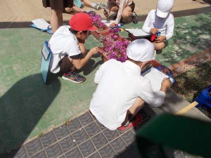 校内の植物の観察をしました。虫めがねをつかったり、高さをはかったり、触ったりしながら詳しく観察しました。互いに見つけたこと、気づいたことを伝え合うことができました。
