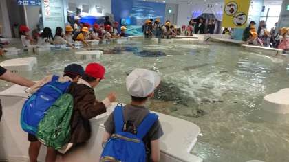 見学を終えました。たくさんの学校、観光客でいっぱいでしたが、まわりを見ながらマナーよく協力して見学することができました。