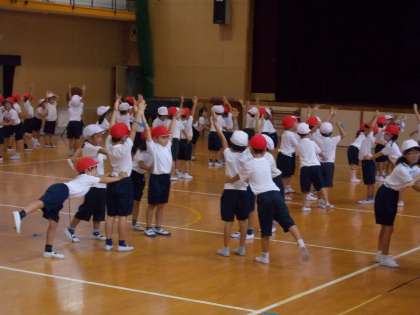 講堂での練習で、振り付けや動きはできるようになってきました。