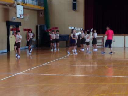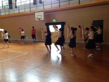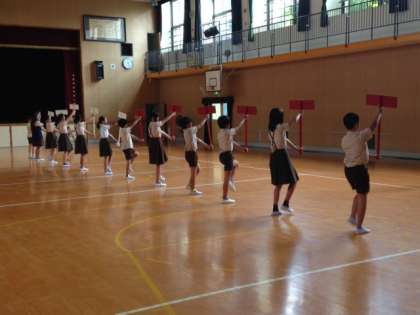6年生のプラカード係の児童が、昼休みに講堂で練習していました。本校は6年生がしっかりしてます。開会式が楽しみです。