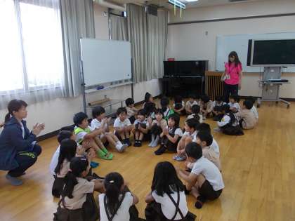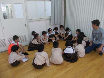 明日の遠足にむけて、1・2年生合同で、話合いをしました。遊んだり、お弁当を食べたり、グループで1・2年生が一緒に活動します。先日の学校探検に続き、さらに仲を深める機会です。楽しい思い出ができることと期待しています。
