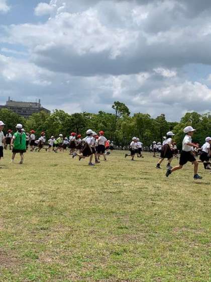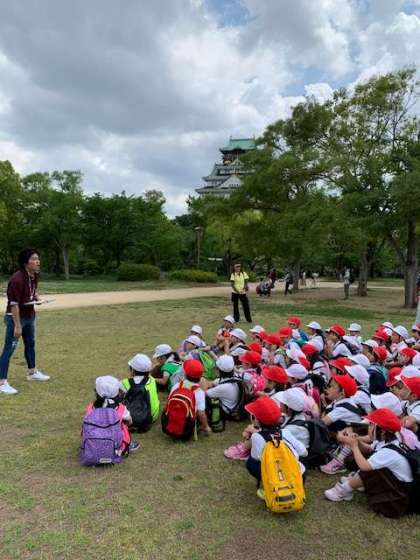 西の丸庭園に着きました。1.2年合同のたてわりグループに別れた後は、増え鬼をみんなでしました。