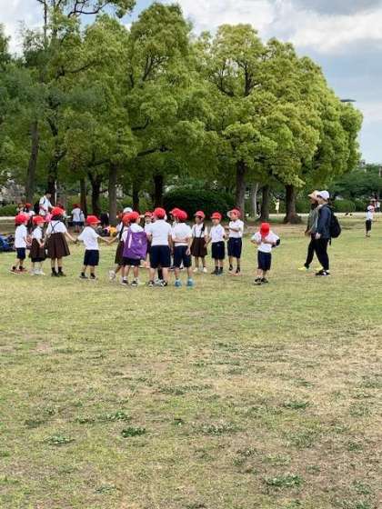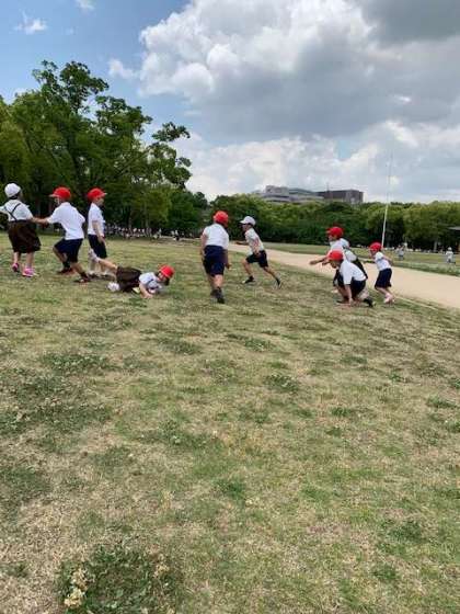 「はないちもんめ」や「ダルマさんがころんだ」を楽しそうにやっています。転んでも、嬉しそうな1年生です。