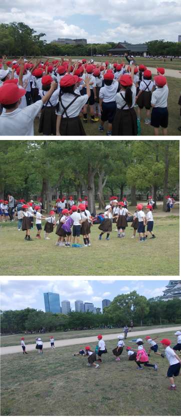 大阪城公園での活動を終え、とても満足した表情で帰校しました。今日の活動でさらに仲良くなったようです。ご家庭でもたくさんお話してくれることと思います。