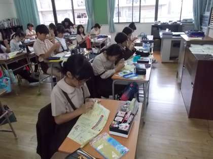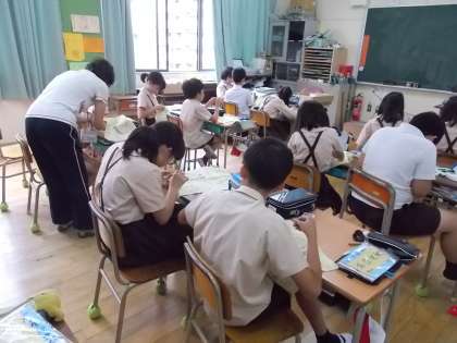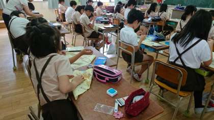 玉止め・玉結びの学習をしました。針に糸を通すことにも慣れてきたようです。玉止め・玉結びにもはじめは苦戦しているようでしたが、根気よく繰り返し、上達したようです。子どもたちどうしで、押し合っている姿も多くみられました。
