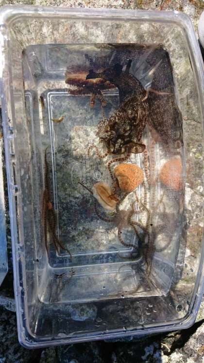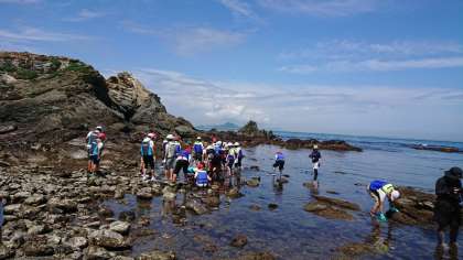 昼食後、しろんご浜まで歩き、磯観察をしています。