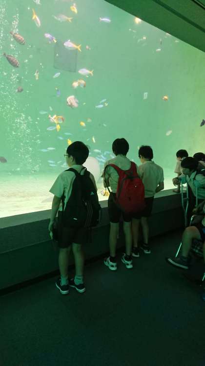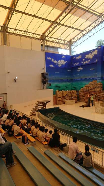 それぞれの水槽を興味深くみています。アシカショーも楽しんでいます。