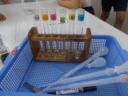 水溶液を酸・アルカリ・中性に分ける実験です。