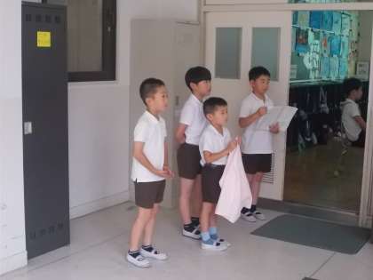 6月25日(火)のNKTフェスティバルの準備をなかよし班に分かれて行いました。今日は、それぞれのコーナーの準備物を作ったり、開会式でのPRの練習をしたりなど、それぞれの役割ごとに準備を進めました。準備が進み、フェスティバルにむけての気持ちが高まったようです。