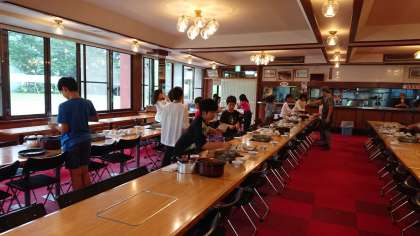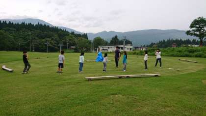 入浴が終わり、係の児童がキャンプファイヤー、夕食の準備をしています。