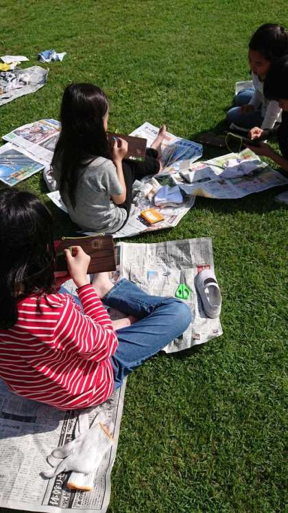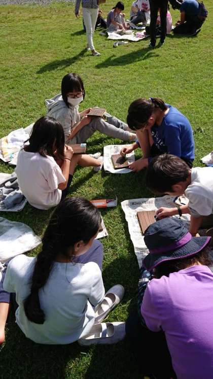 みがいた焼き板に、絵を描いています。どんな作品ができるか楽しみです。