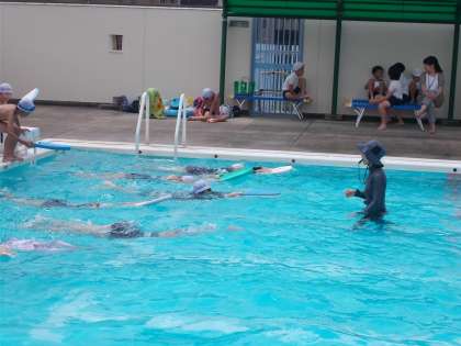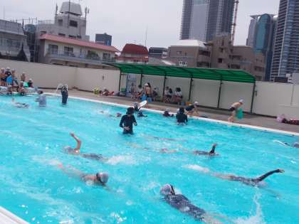 水慣れの後、泳力ごとに分かれ、それぞれの課題に応じたコースで学習に取り組んでいます。子どもたちは目標にむかって意欲的に取り組んでいます。今後も3・4年生はクロールを中心に学習を進めていきます。
