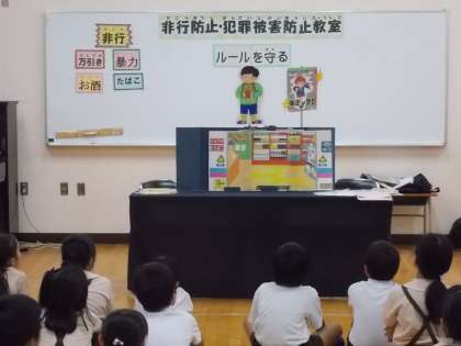 昨日、梅田少年サポートセンターの方による非行防止教室を行いました。社会のルールを守る大切さ、断る勇気の大切さを人形劇やロールプレイングを通じて学びました。