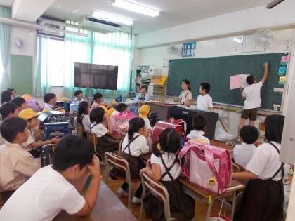 夏休みが近づいてきました。5時間めは地域児童会で集まり、班ごとに1学期の振り返ったり、夏休みを安全で健康に過ごすために話し合ったりしました。地域児童会の後は、班ごとに集団下校をしました。