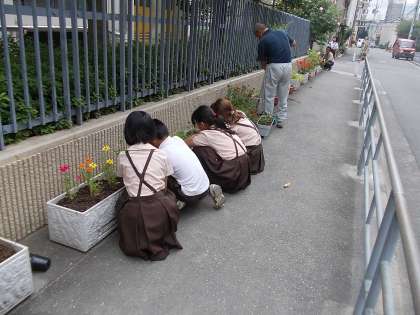 環境美化委員会でも、これまで育ててきたナデシコを植え替えました。学校の周りのプランターから夏の花(ヒマワリ・アサガオ)を抜いて、ナデシコを植えていきました。アサガオのツルをはずすのは一仕事でした。みんな仲良しです。小さな命こそ大切にできる子どもたちに育ってほしいです。