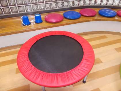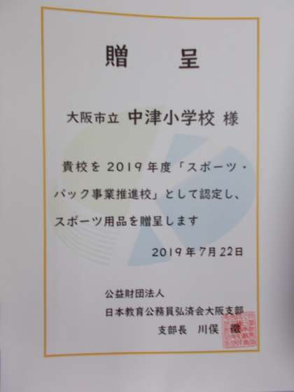 日本教育公務員弘済会よりスポーツパック推進校として認定され、スポーツ用品(パカポコ、バランスクッション、トランポリン)をいただきました。先日、お試しにバナナホールに置いたところ、多くの子どもたちが喜んで利用してくれていました。設置場所等を検討して、子どもたちの健康な体作りのために使用していきたいと考えています。