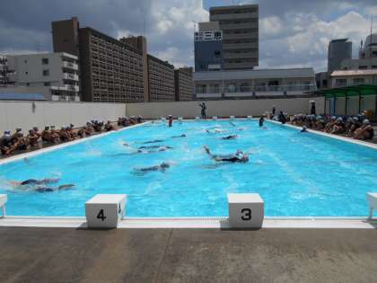 連日、たくさんの児童がプール開放を楽しんでいます。今日は、開放の最終日。少しでも泳げるように練習しました。学校のプールはしばらく夏休みに入ります。