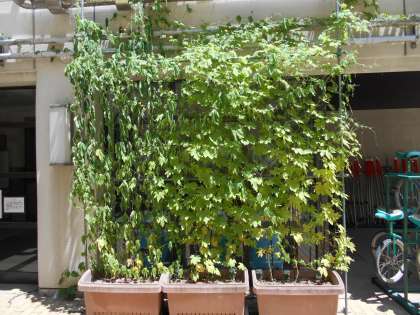 中津小学校の「緑のカーテン」は大きなものではありませんが、暑さを和らげてくれています。