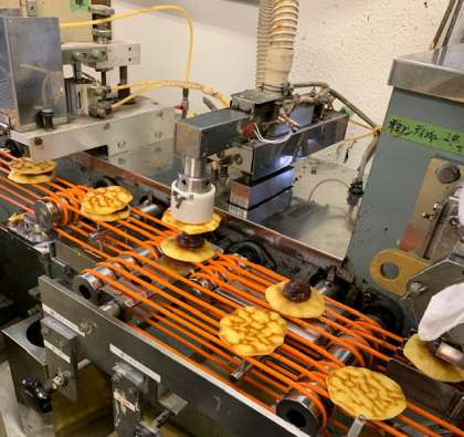 訪問すると、工場内は名物のどら焼きを機械で作っておられ、冷房も入れずに、熱気溢れる機械の周りで、みなさんが黙々と仕事をしておられました。