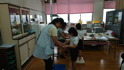 1・2年生が発育測定を行い、全学年の発育測定を終えました。自分の成長を感じとることができたでしょうか。また、発育測定時には手足の爪の点検をしています。保健指導では、1年生から4年生は「けがの予防」について学習しました。