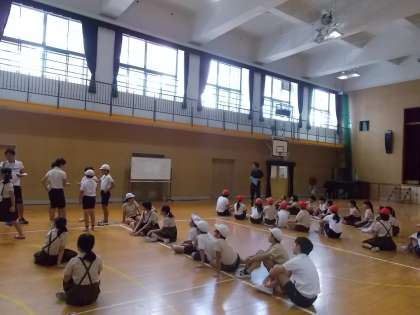 応援団の結団式を行いました。応援団は5・6年生の児童で構成され、赤組白組ともに20人です。やる気に満ちあふれており、これからの活躍が楽しみになりました。