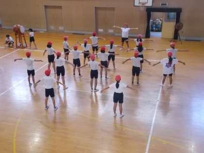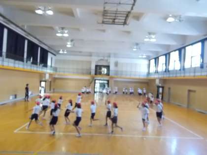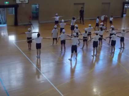 応援団の練習が本格的に始まりました。団長を中心に大きく気合の入った声が講堂に響きわたっていました。明日は全校児童の前で応援団披露があります。