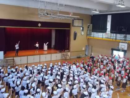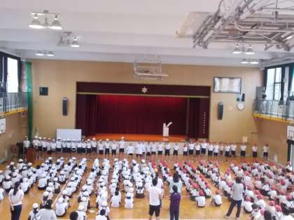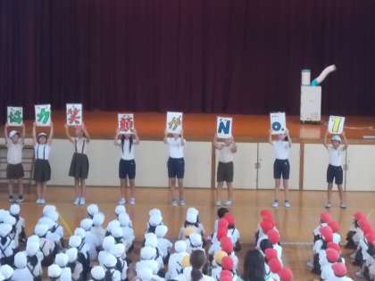 今日の集会では、運動会にむけて、歌の練習、応援団の披露、運動会のめあての発表がありました。運動会にむけて、様々な準備が進んでいます。