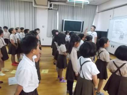 10月16日(水)は音楽集会です。今回の担当は3年生で曲は「おはようのエール」です。歌う姿勢、強弱のつけ方などを意識しながら、美しく歌うために練習を重ねています。
