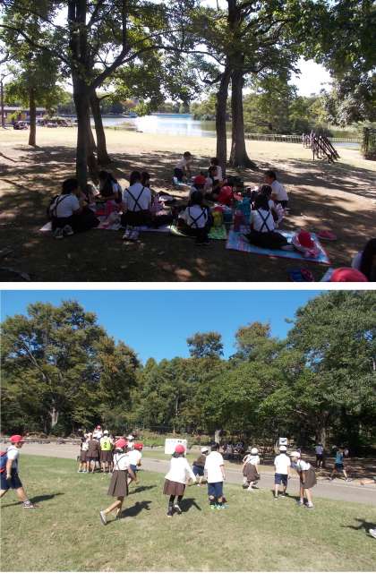 電車の遅れにより長居公園への到着が遅くなった影響で、オリエンテーリングの時間が短くなりました。限られた時間の中、なかよし班で協力して楽しそうに各ポイントを回っていました。互いに声をかけあいながら活動している姿がたくさん見られました。昼食や昼食後の時間も楽しくなかよし班の友だちと過ごすことができました。