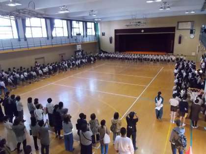 今日は3年生担当の音楽集会でした。曲は「おはようのエール」です。練習の成果があらわれた元気で美しい歌声でした。講堂に響きわたった歌声で、気持ちよく1日のスタートを切ることができました。