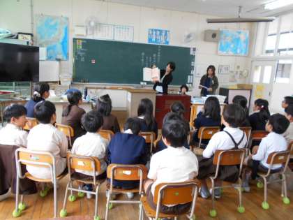 4年生で、図書館支援ボランティア「おひさま」のみなさんによる読み聞かせがありました。今日は、「ざぼんじいさんの かきのき」「うえきばちです」を読んでいただきました。子ども達は今日も聞き入っていました。次にはどんな本と出会えるのか楽しみにしています。